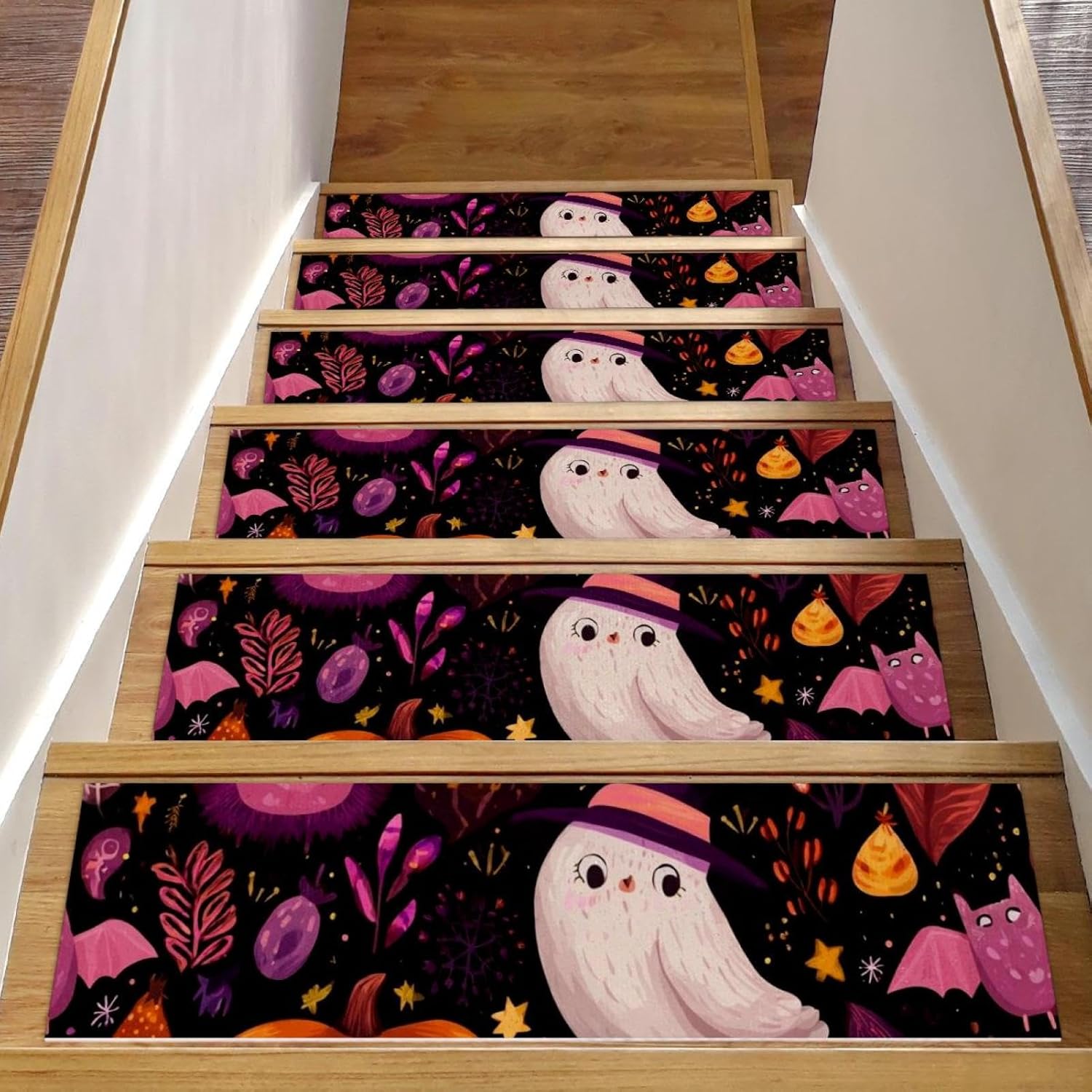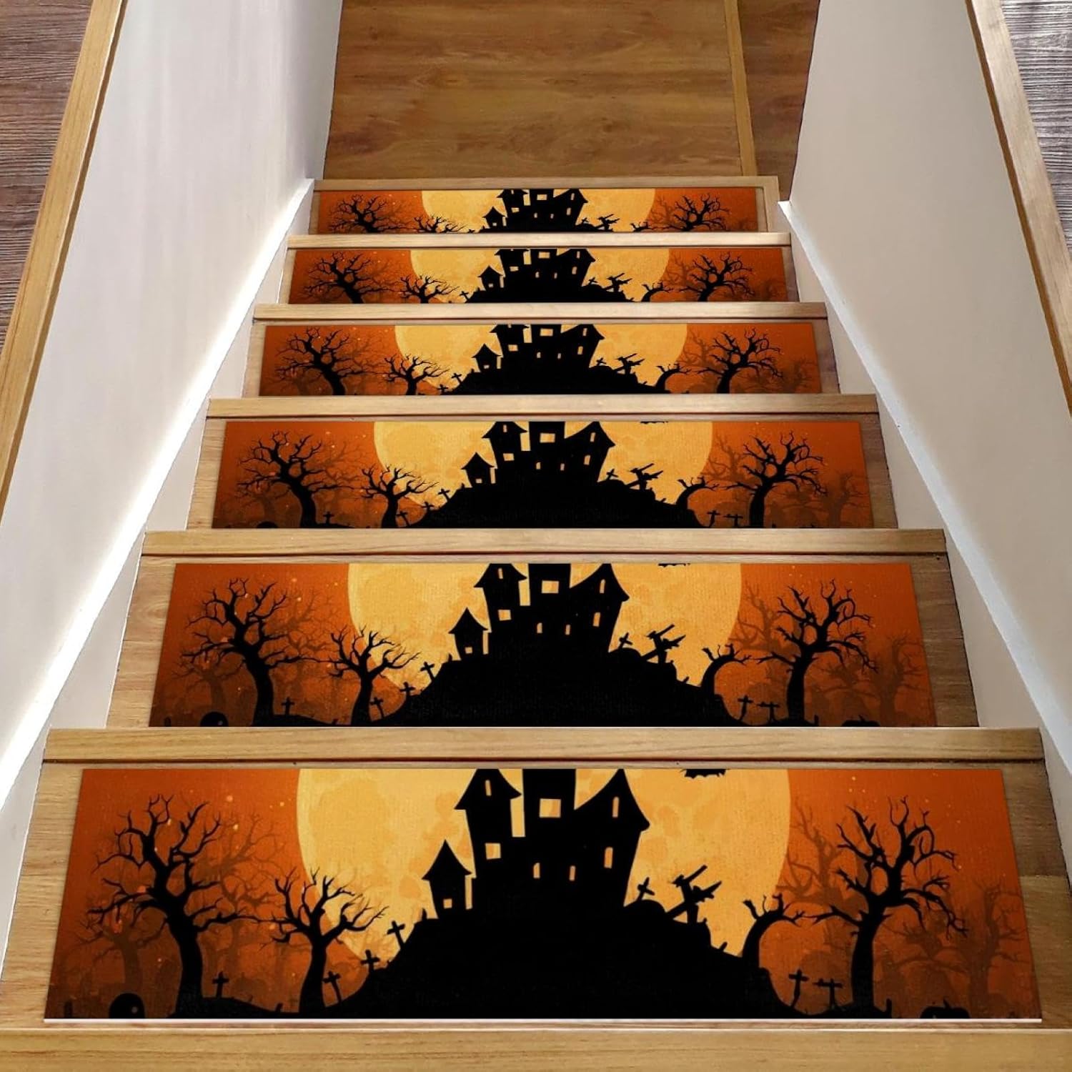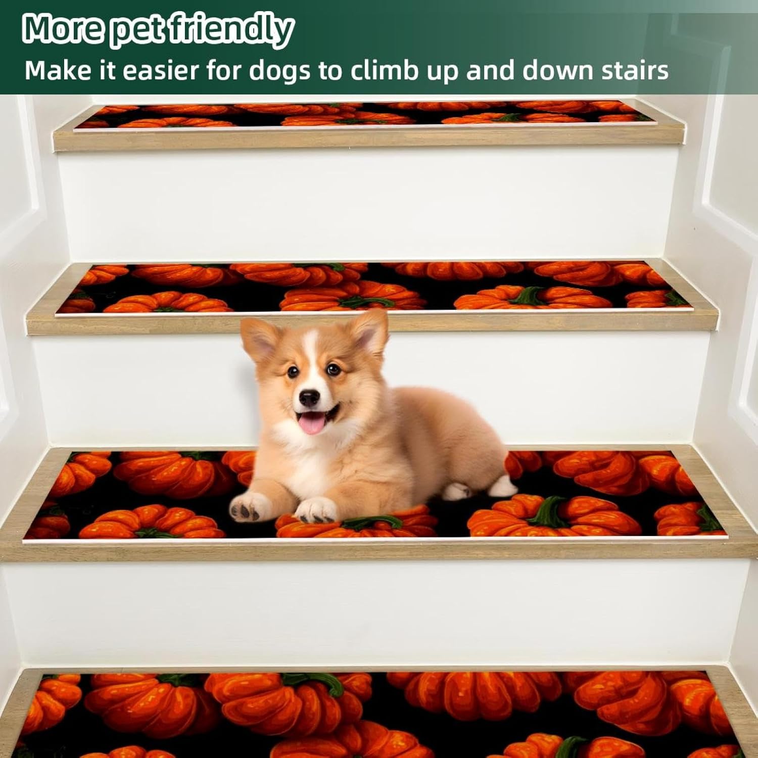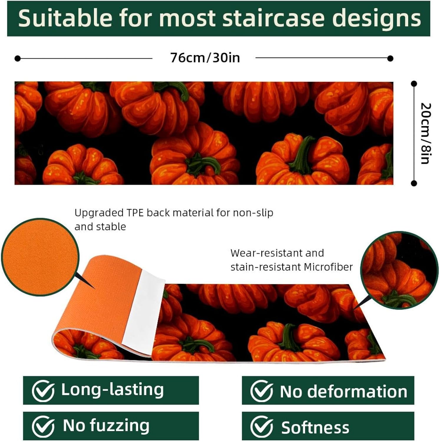 ・Size: 30 x 8 in / 76 x 20 cm, 5 mm thickness. ・Material: The polyester surface absorbs water, preventing stains on the floor. The TPE back is non-slip and water-resistant, preventing damage to the stairs. ・Package Contains: 15 pieces of 30x8in (about 76x20cm) stair mats, 5mm thick. Suitable for most needs. Each stairway treads rugs is individually wrapped. ・Easy to Clean: Vacuum, hand wash or machine wash. The stair runners for wooden steps can be machine washed, preferably hand washed, or vacuumed. Do not use bleach or tumble dry at high temperatures, drying at appropriate low temperatures will give you a comfortable texture. ・Noise Reduction of Stair Treads: By adding our stair runner, not only can you protect your floors, but you can also significantly diminish the noise caused by walking up and down the stairs. Stair rugs can decorate your stairs, create a warm home atmosphere, you can enjoy a peaceful and quiet home environment without disturbances. ・Easy to Remove Adhesive Backing: When you want to replace the stair treads non slip, the adhesive backing easily removes without leaving residue on the steps. ・Holiday Design: Stair carpet treads are designed specifically for Christmas,Halloween, Thanksgiving Day features classic festival elements and vivid printing styles,creating beautiful and stunning visual effects for you. This holiday themed stair treads can easily help you add a strong festive atmosphere, bringing charming and exquisite holiday decorations.