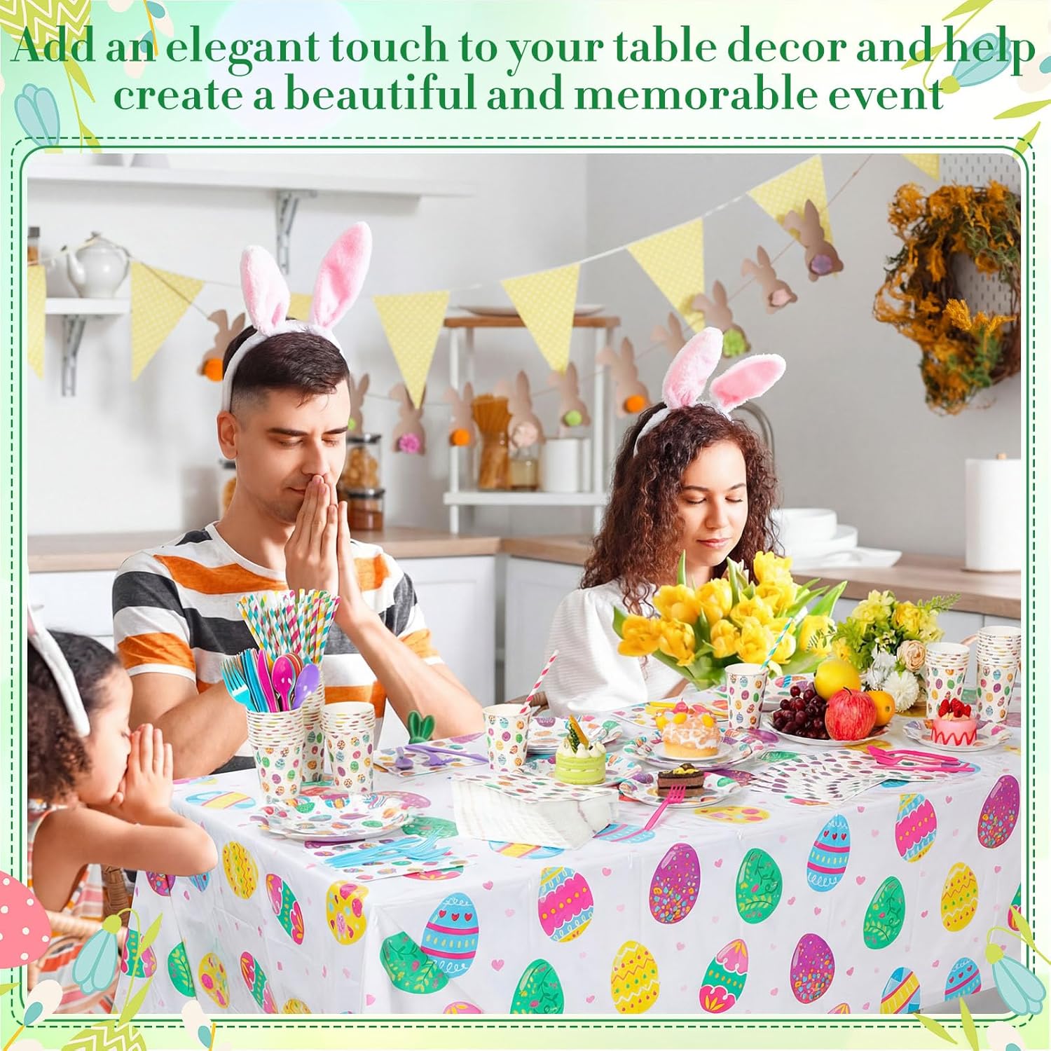 Features: Emphasized with colorful eggs patterns, our Easter Day party supplies are designed to add class and sophistication to your celebration. Our Easter disposable tableware set feature a variety of sizes to cater to your requirements, the paper plates come in 9 inches and 7 inches in diameter, ample space for meals and snacks. Our cups hold around 9 oz of beverages, ideal for serving beverages. The PE plastic tablecloth spans broadly to a size of about 54 x 108 inches. Specifications: Material: Plate, cup, napkin, straw, paper Tablecloth: PE plastic Knife, fork, spoon: plastic Main color: rainbow color Size: Paper plate: about 9 inches/ 23 cm, 7 inches/ 18 cm in diameter Cup: about 9 oz in capacity Napkin: about 13 x 13 inches Tablecloth: about 54 x 108 inches/ 137 x 274 cm Straw: about 8 inches/ 19.7 cm long Package includes: 100 x Paper plates 50 x Coffee cups 100 x Graduation napkins 2 x Graduation tablecloth 50 x Knife 50 x Forks 50 x Spoons 50 x Straws Notes: Manual measurement, please allow slight errors on size. The color may exist a slight difference due to different screen displays. Our tableware sets are disposable and not dishwasher or microwave safe