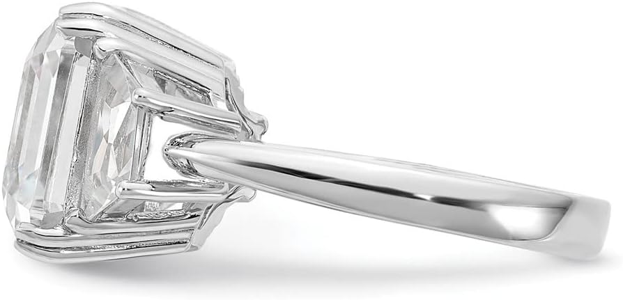 Features: Material: Primary - Purity: 925Finish: PolishedStone Type_1: Cubic Zirconia (CZ)Stone Type_2: Cubic Zirconia (CZ)Stone Color_1: WhiteStone Color_2: WhiteStone Quantity_1: 2Stone Quantity_2: 1Plating: RhodiumBand Width: 3 mmStone Setting_1: Prong SetStone Setting_2: Prong SetFeature: Open BackMaterial: Primary: Sterling SilverCompleteness: Complete (all stones included)Sizeable: NoStone Shape_1: IrregularStone Shape_2: SquareStone Treatment_1: SyntheticStone Treatment_2: SyntheticThickness: <1.9 mmItem Weight U/M: gmWidth of Item: 3 mmPackaging: Gift PouchProduct Type: JewelryJewelry Type: RingsSold By Unit: EachGender: Women'sMaterial: Primary - Color: WhiteRing Type: FashionRing Top Length: 12.2 mmRing Top Width: 19.8 mmFeature 2: Fancy UndercarriageStone Cut_1: BrilliantStone Cut_2: AsscherPlating Color: Silver ToneStone Creation Method_1: SyntheticStone Creation Method_2: SyntheticAll weights and measurements are approximate and may vary slightly from the listed information.