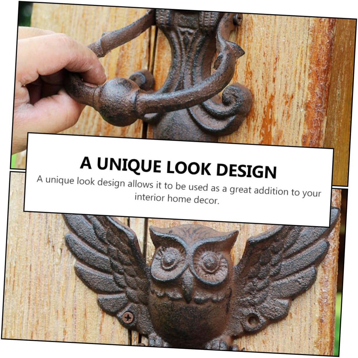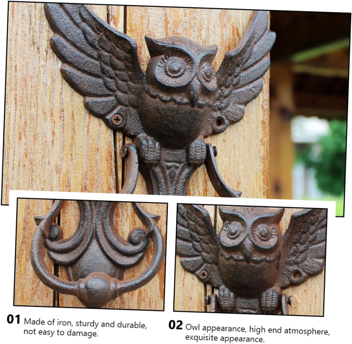 Package List 1 x Door Knocker with Screw Features - Size: About 22.50X17.70X4.50cm/8.84X6.96X1.77in Yard Door Handle - Material: Iron Yard Door Knocker - Handles can be used for doors, wood doors, gates, garages, barns, sheds, sliding doors, etc Antique Door Knocker. - With retro design, this door pull ring can be a nice addition for you home door Garden Door Knocker. - Made of with exquisite workmanship Door Handle. - This retro door knocker would make your home full of vintage atmosphere Door Knocking Handle. - ColorBlack Antique Door Handle - It is a great housewarming home, apartment or condo, decorative door knocker Door Pull Handle.Goods DescriptionDoor Handle Adopted of , it is practical and durable for long time use.Antique Door Handle because our product can meet your need.Owl Shaped Door Knocker If you are looking for a professional and door knocker, then your research is over here