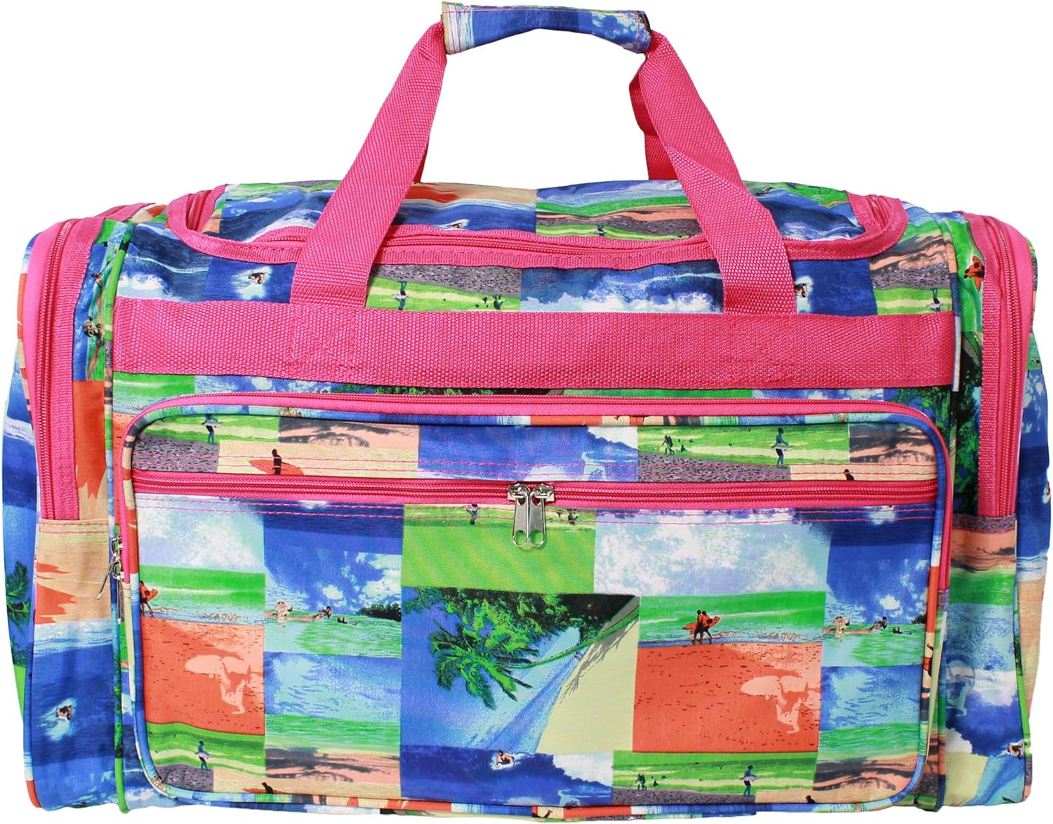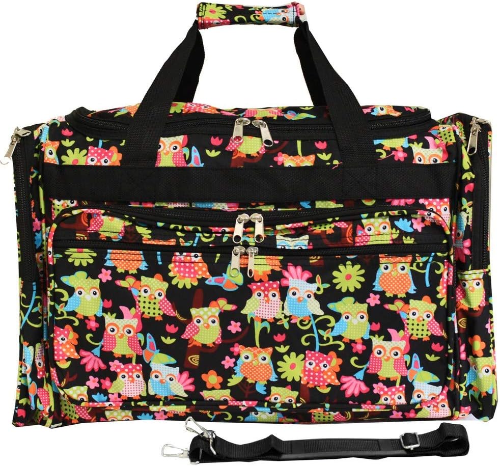 Designed for the modern traveler, this Vivrant Print Duffel Bag is a sleek and versatile accessory that combines functionality with fashion-forward design. Its spacious main compartment, two front zipper pockets, and two side pockets ensure ample storage for all your essentials, while the removable and adjustable shoulder strap and two top carry handles offer multiple carrying options. The rear strap conveniently slides over your luggage handle, making it easy to transport alongside your rolling suitcase. Whether you're off on a weekend getaway or a longer journey, this duffel bag is the perfect blend of practicality and style for your travels.
